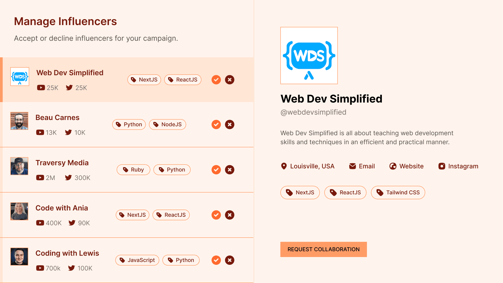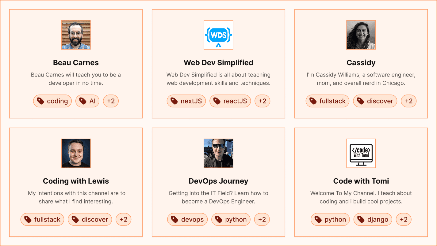 From renowned educators who've taught millions, to niche dev influencers shaping tech conversations. This is your direct line to talent shaping the new coder world.